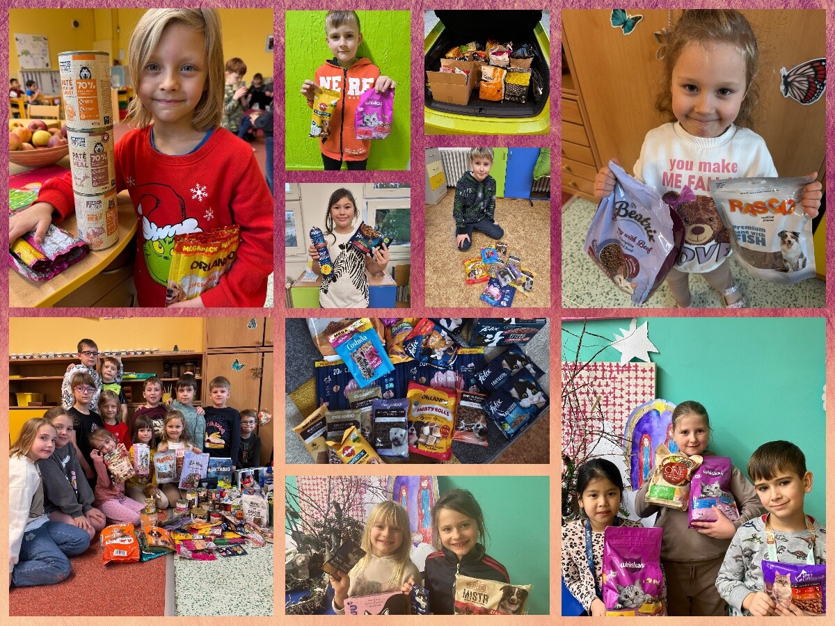 V průběhu prosince se žáci z odd. ŠD Motýlek, Sluníčko a Kytička v rámci akce Dobrý skutek na Vánoce zúčastnili sbírky ve prospěch Azylu pro zvířata HK. Všem rodičům žáků, kteří se do sbírky zapojili, děkujeme! Velké množství granulí a pamlsků kočičky a pejsky jistě potěšilo...