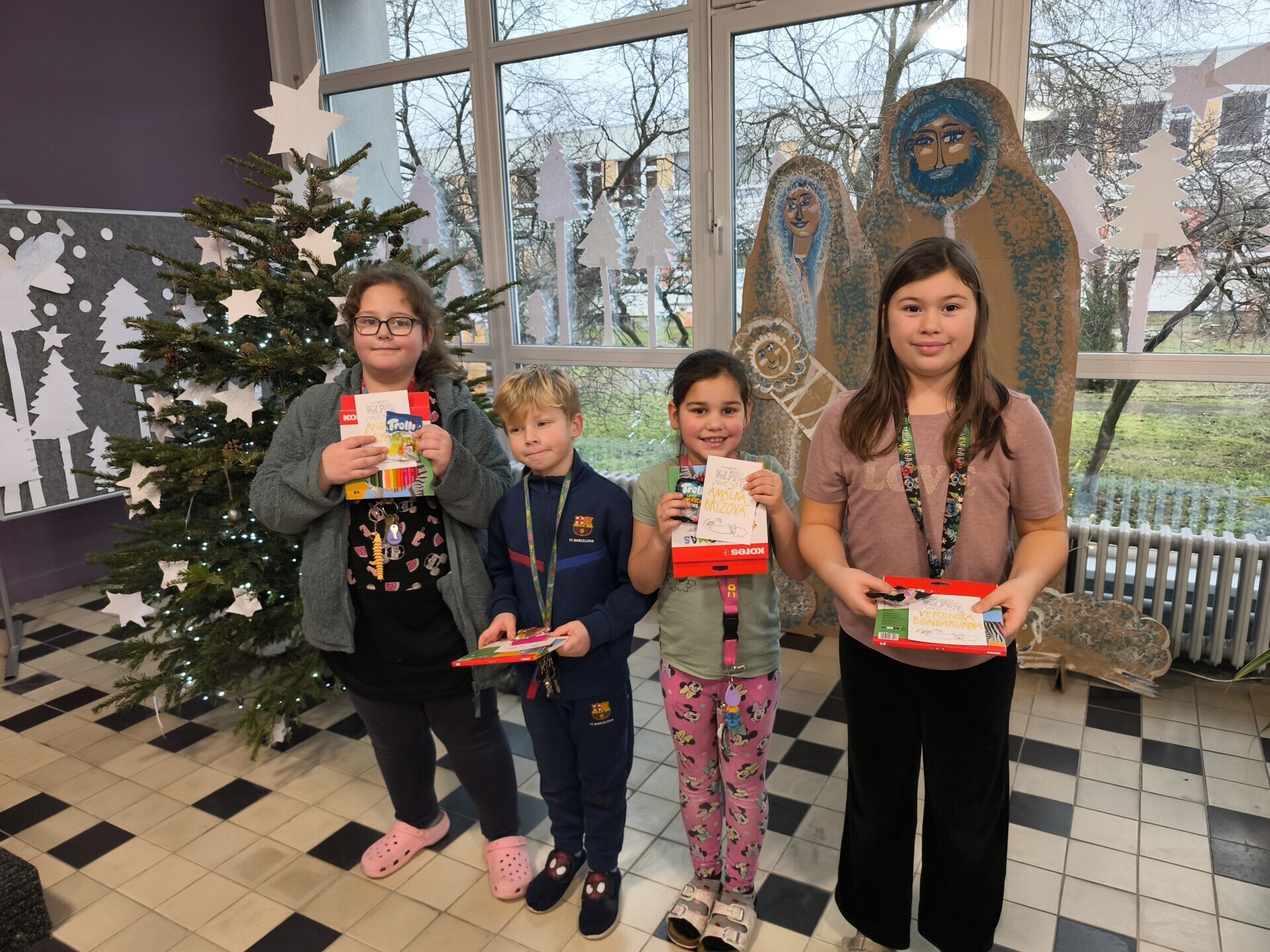 V Prosinci jsme se zúčastnili DOBRÉHO SKUTKU - Azyl pro zvířata v Hradci Králové , vytvořili jsme z vánoční abecedy výzdobu na nástěnku , četli jsme z vánoční knihy tradic a 12.12. jsme shlédli v Multikině Cinestar pohádku. Užili jsme si Mikulašskou discotéku v tělocvičně , kde jsme plnili úkoly a tančili. V neposlední řadě jsme se také účastnili výtvarné soutěže s názvem Advent. Vytvořili jsme svíčky s překvapením pro rodiče a navlékali jsme korálky. Poslední prosincový den, jsme si vyrobili nepečené cukroví, rozbalili jsme si dárky do družinky a pustili jsme si vánoční pohádku a koledy. VŠEM PŘEJEME KRÁSNÉ SVÁTKY VÁNOČNÍ A ŠŤASTNÝ NOVÝ ROK 2026.
