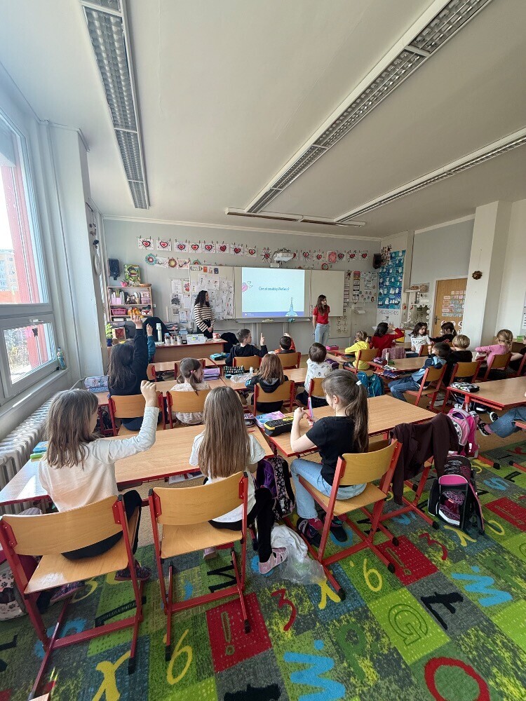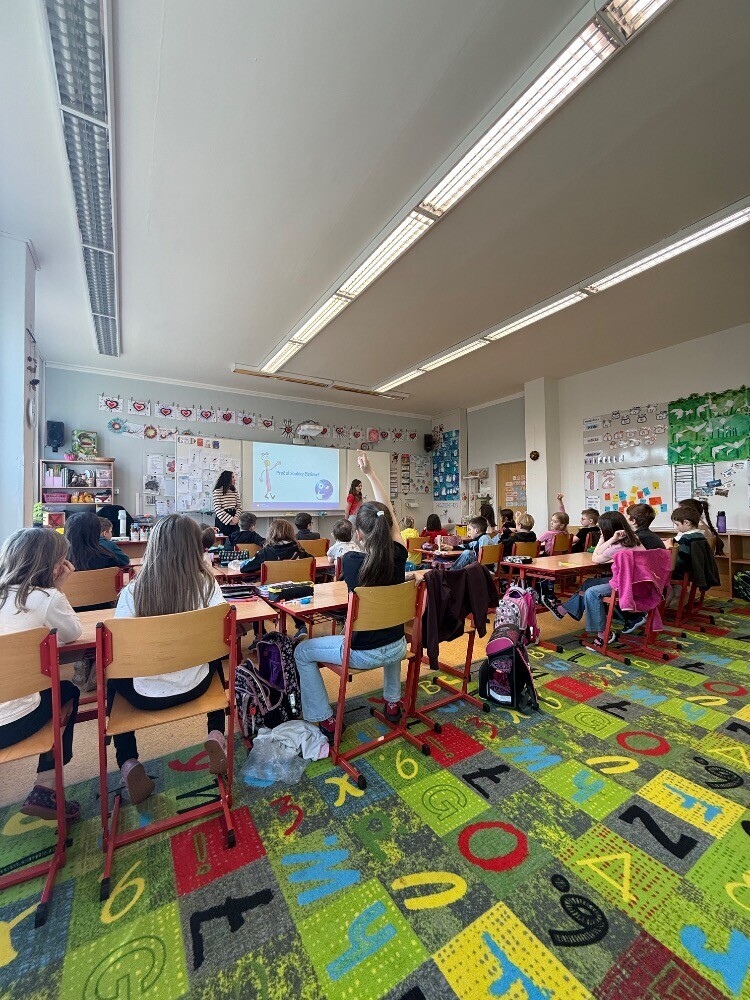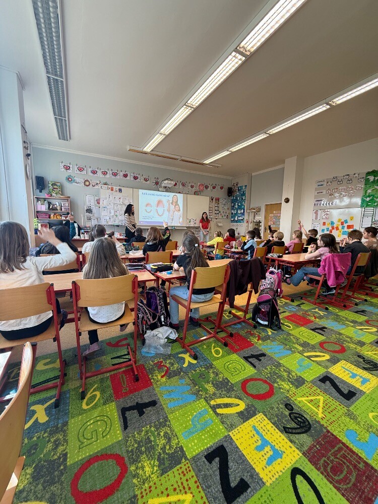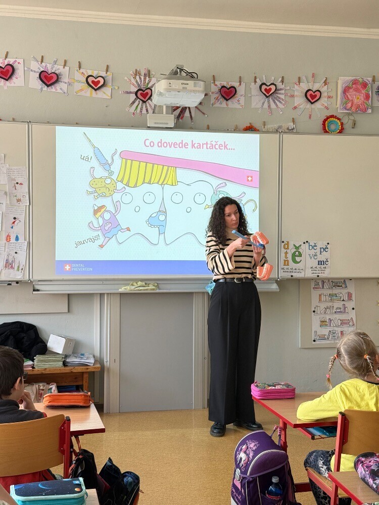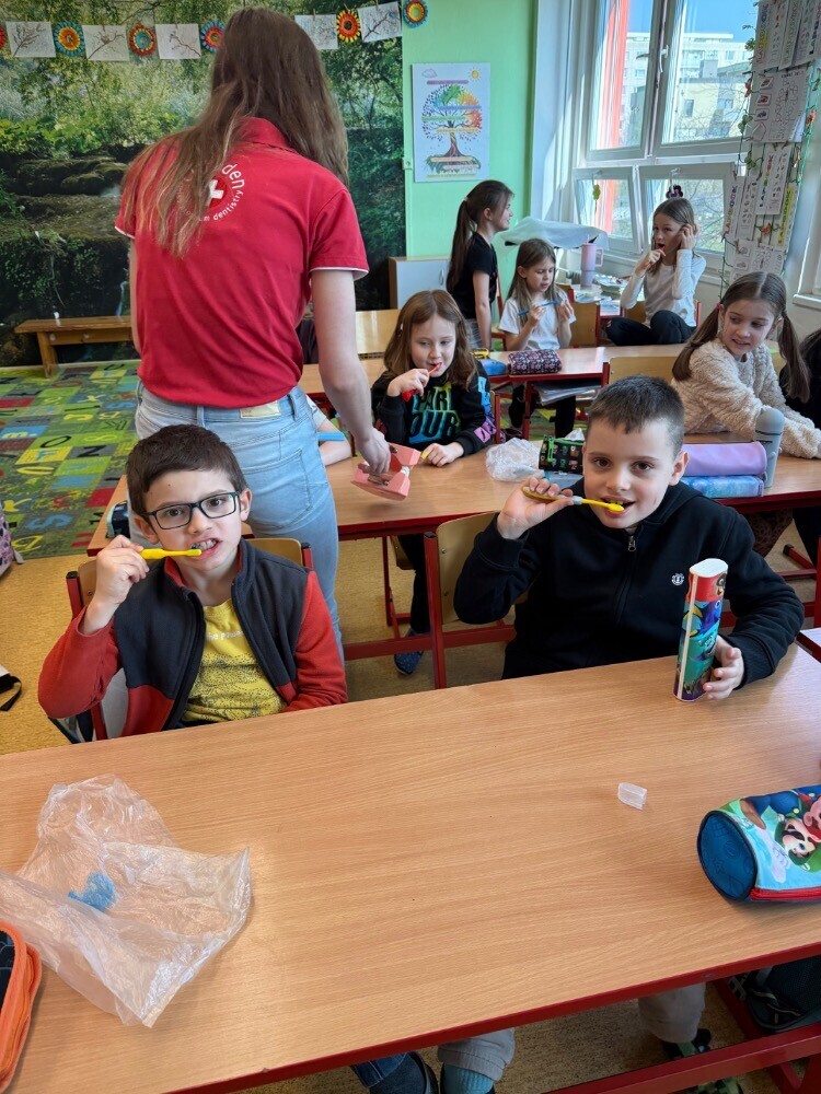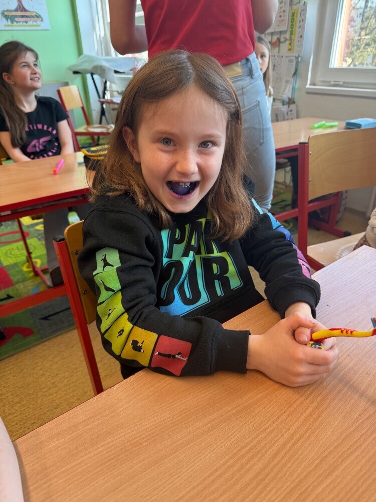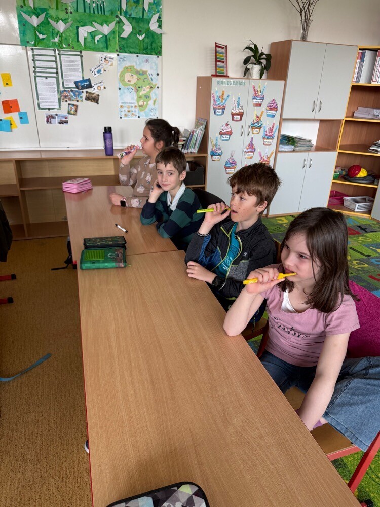 Ve středu nás navštívily studentky zubního lékařství, které si pro nás připravily zajímavou hodinu o péči o zuby. Společně jsme si povídali o tom, jak si zuby správně čistit a jaké pomůcky při tom používat.